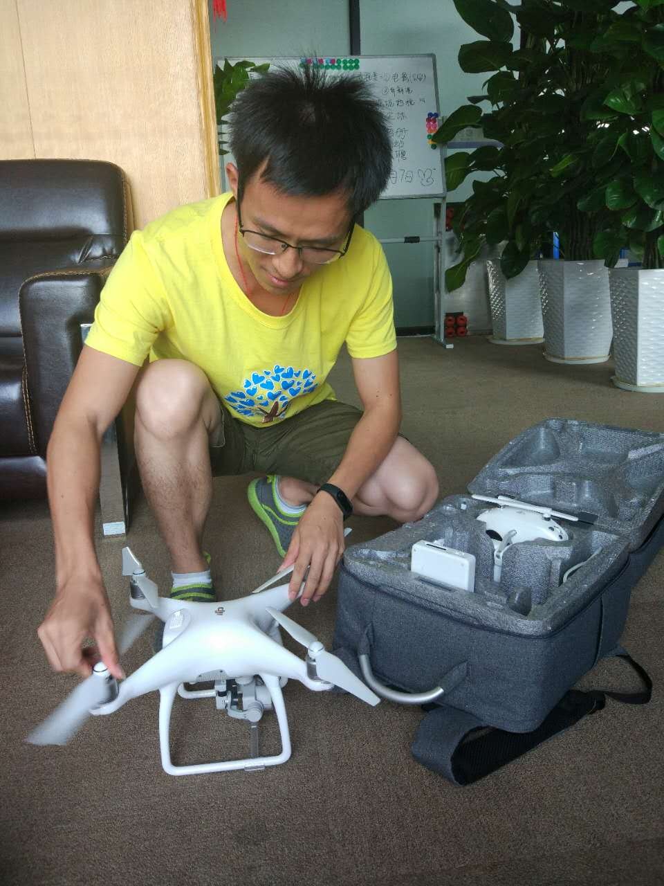 初次看到无人机是在网络新闻上,当时认为这是一个新兴产业,未来发展潜力巨大;就这样我试着从网上找培训机构,也就是通过考证这样的方式进入到无人机行业”。