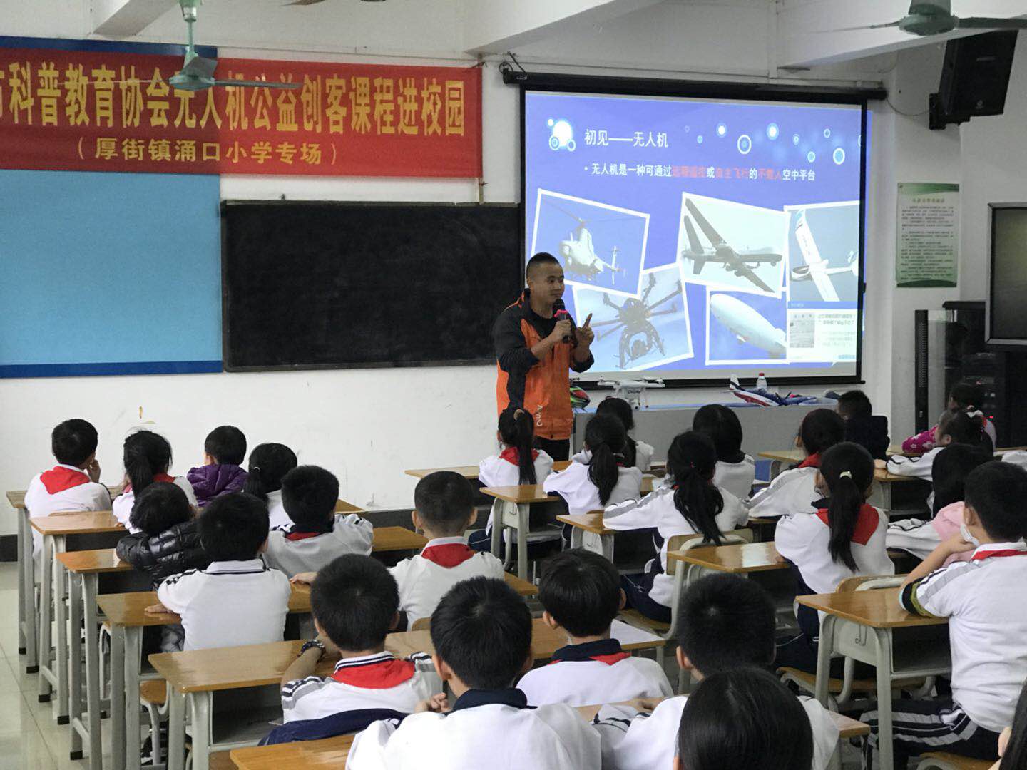 为深入贯彻《国务院办公厅关于发展众创空间推进大众创新创业的指导意见》精神,弘扬创客文化,促进创客交流,进一步激发广大学生创新创造意识、提升创新创造能力,积极开创学校“大众创新 万众创业”的浓厚氛围和生动局面, 12月27日下午,涌口小学举行东莞市科普教育协会无人机公益创客课程进校园专场活动,此次活动异能无人机以理论与实践相结合,将无人机科研成果直接转换成面向青少年的科普教育。