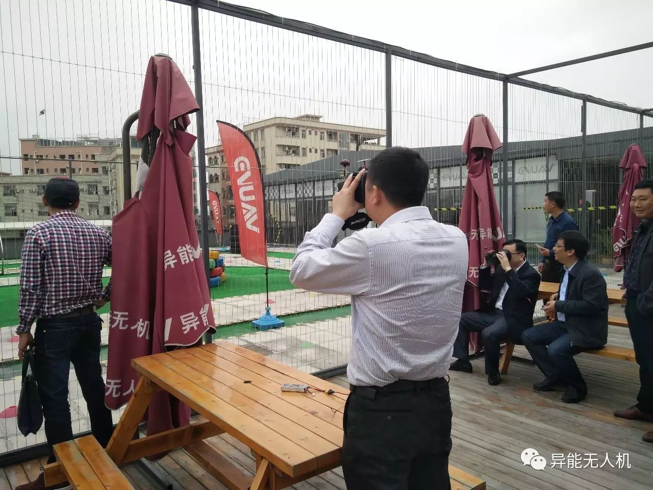 3.竞技赛道上飞手操控着穿越机在穿梭着,各位领导在场外戴上VR眼镜体验第一视觉,感受科技的魅力。