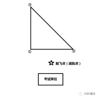 (一)起飞点(返航点)与考试席位的相对方位由委任代表根据现场环境等情况进行决定。于起飞点前规划一个等腰直角三角形并循环执行,①②边长为 a1,③①边长为 a2,∠①为直角航线相对地面高度为 b,水平速度为 c,垂直速度为 d,转弯方式为停止转弯, 停留时间不作要求;