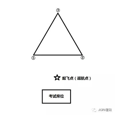 (一)起飞点(返航点)与考试席位的相对方位由委任代表根据现场环境等情况进行决定。于起飞点前规划一个等边三角形并循环执行,边长为 a,航线相对地面高度为 b,水平速度为 c,垂直速度为 d,转弯方式为停止转弯, 停留时间不作要求;