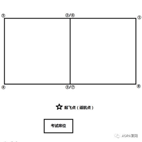 (一)起飞点(返航点)与考试席位的相对方位由委任代表根据现场环境等情况进行决定。于起飞点前规划一个闭合水平 8 字航线并循环执行,①②边、②③边、③④边、④⑤边、⑤⑥边、⑥⑦边、⑦⑧边边长均为 a,航线相对地面高度为 b;