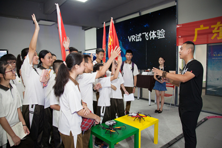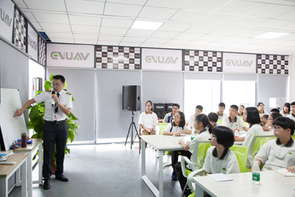 为了锻炼学生干部的团队协作能力,拓展学生干部的视野,感受东莞最前沿的科技成就,接受爱国主义教育,打造一支特别能吃苦、特别能奉献、特别有能力的学生干部队伍,让我校的学生会干部队伍建设成为学校的又一品牌。6月2日,由思政处任玉柱副主任、校团委副书记范谨煜、初一、初二年级选派46名优秀学生会干部部代表,参加由学校团委组织的学生干部励志营活动。励志营的第一站是位于东莞常平的异能无人机科技有限公司。同学们怀着兴奋的心情,认真聆听讲师讲解无人机的知识,观看精心准备的无人机表演秀,还通过无人机航拍下了团体照片。接着,同学们走进异能无人机展览馆,进一步了解无人机的“前世今生”。此时,同学们已经对无人机产生浓厚的兴趣,看着一架架精美神奇的无人机,已经对遥控无人机跃跃欲试。这不,机会来了,每一位同学都在科技馆里亲身体验了遥控无人机,简直太过瘾了!